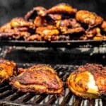 - Marinate the chicken thighs in mild jerk sauce for at least 4 hours, preferably overnight.